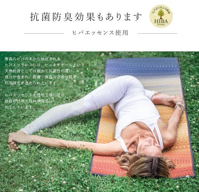森林浴の癒し効果成分を含むい草の香りに包まれながらヨガをお楽しみください。